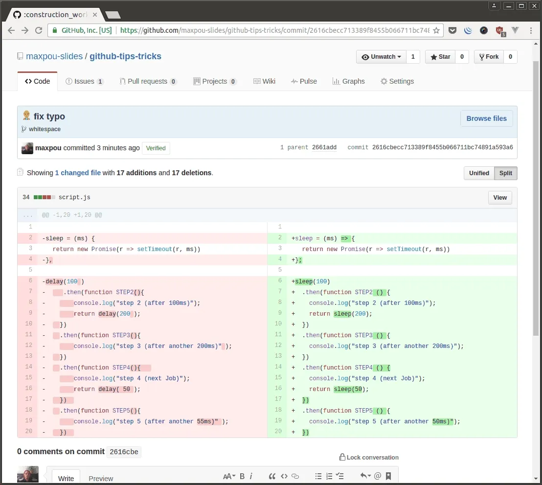 Even if it’s a web application, using your mouse isn’t mandatory. In fact, GitHub offer a lot of different shortcuts. To see them, just press ” ? ” (doesn’t matter where you are!).